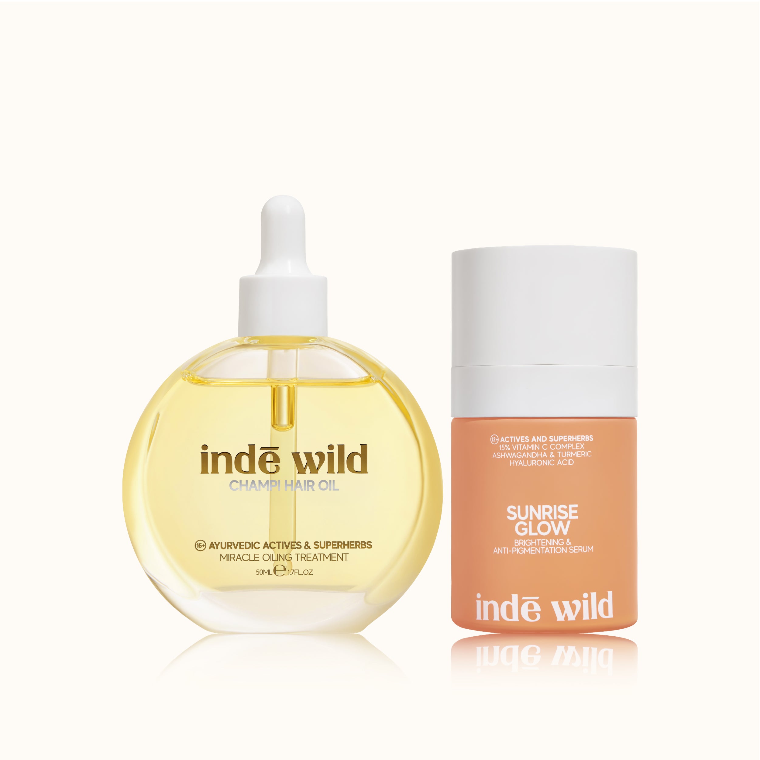 Why it works together: You asked, we answered. We know how much our Inde Wild community loves our AM Serum, an antioxidant powerhouse for effective brightening, targeting hyperpigmentation and leaving skin effortlessly glowing. Pair with Champi Hair Oil, our latest hero and essential hair health investment passed down, generation to generation by the Khosla family. Featuring 16 fortified Ayurvedic ingredients, the perfect blend of oils and herbal extracts, for essential hair and scalp rejuvenation, protection and strengthening.